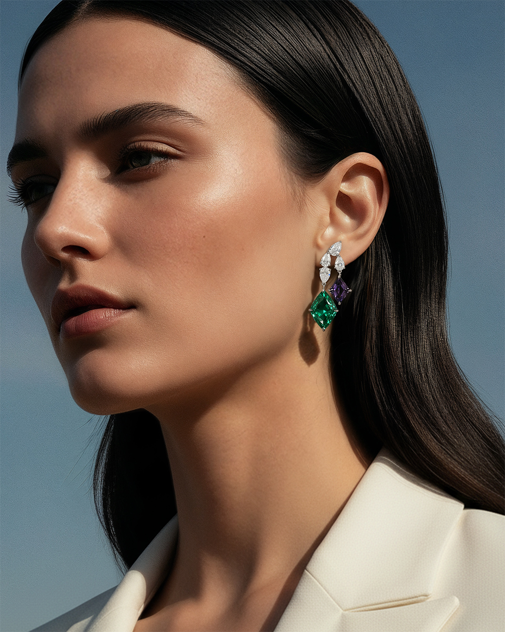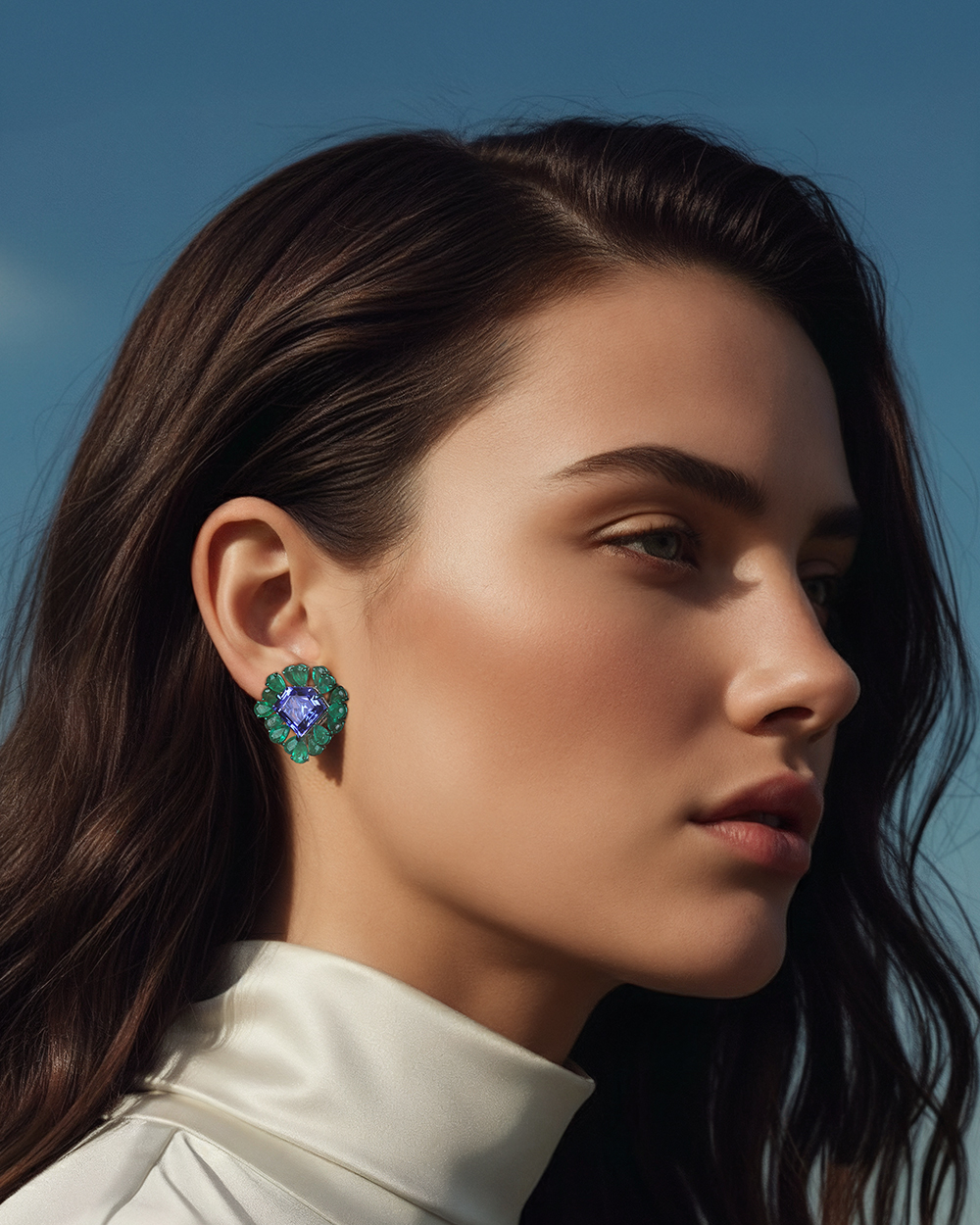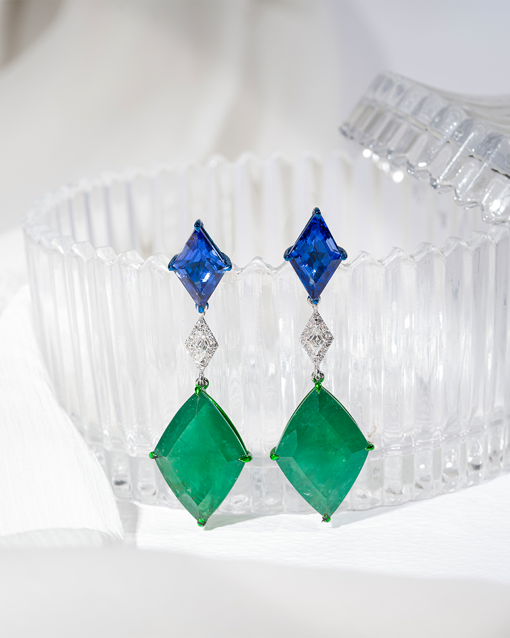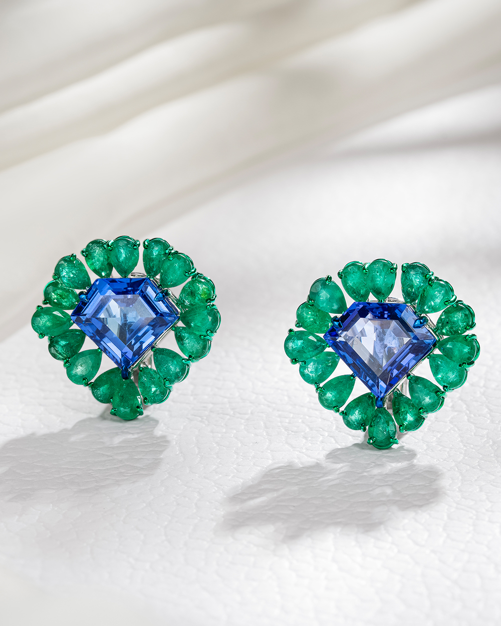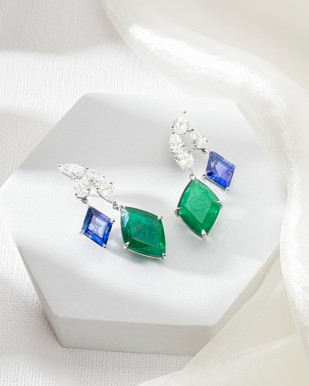 Tanzanites, Zambian emeralds and full-cut diamonds