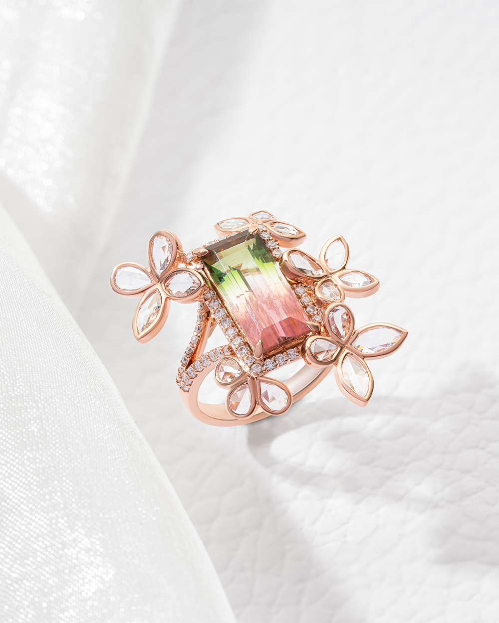 Ombre tournamalines, rose cut and full cut diamonds