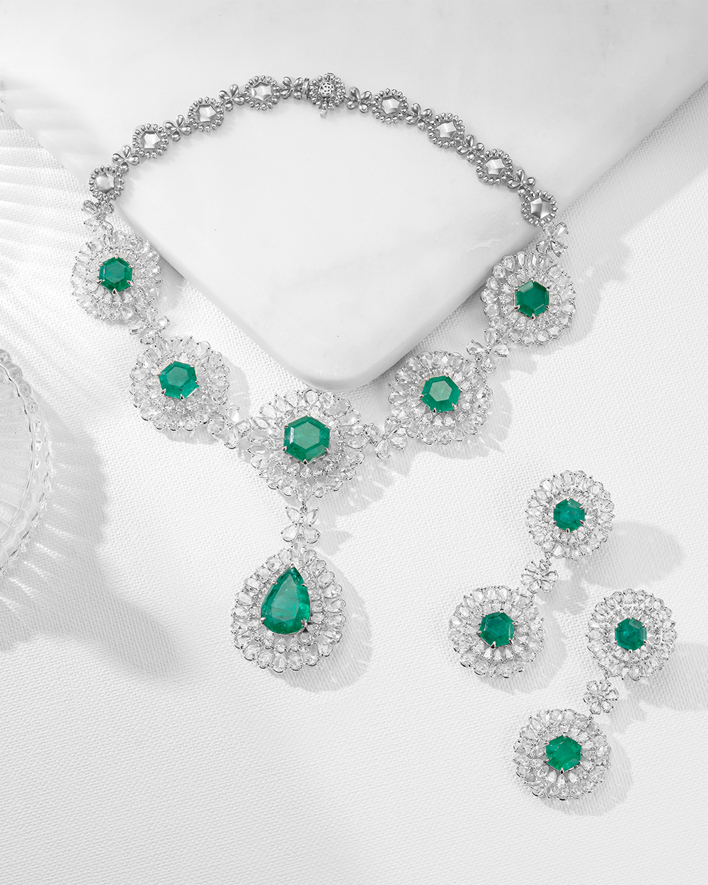 Zambian emeralds and rose-cut diamonds