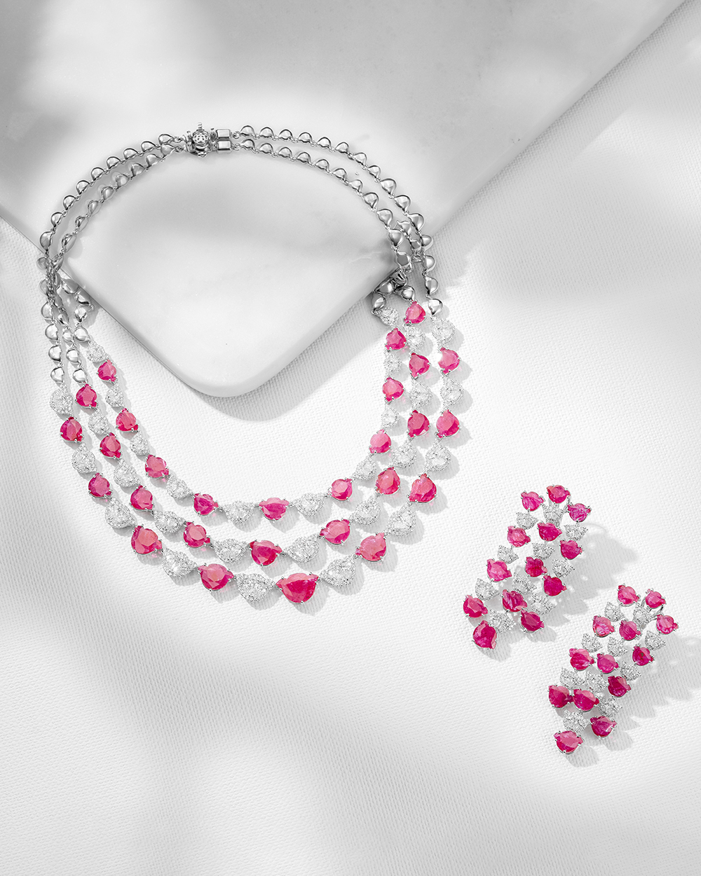 Tulip cut Mozambique rubies and diamonds